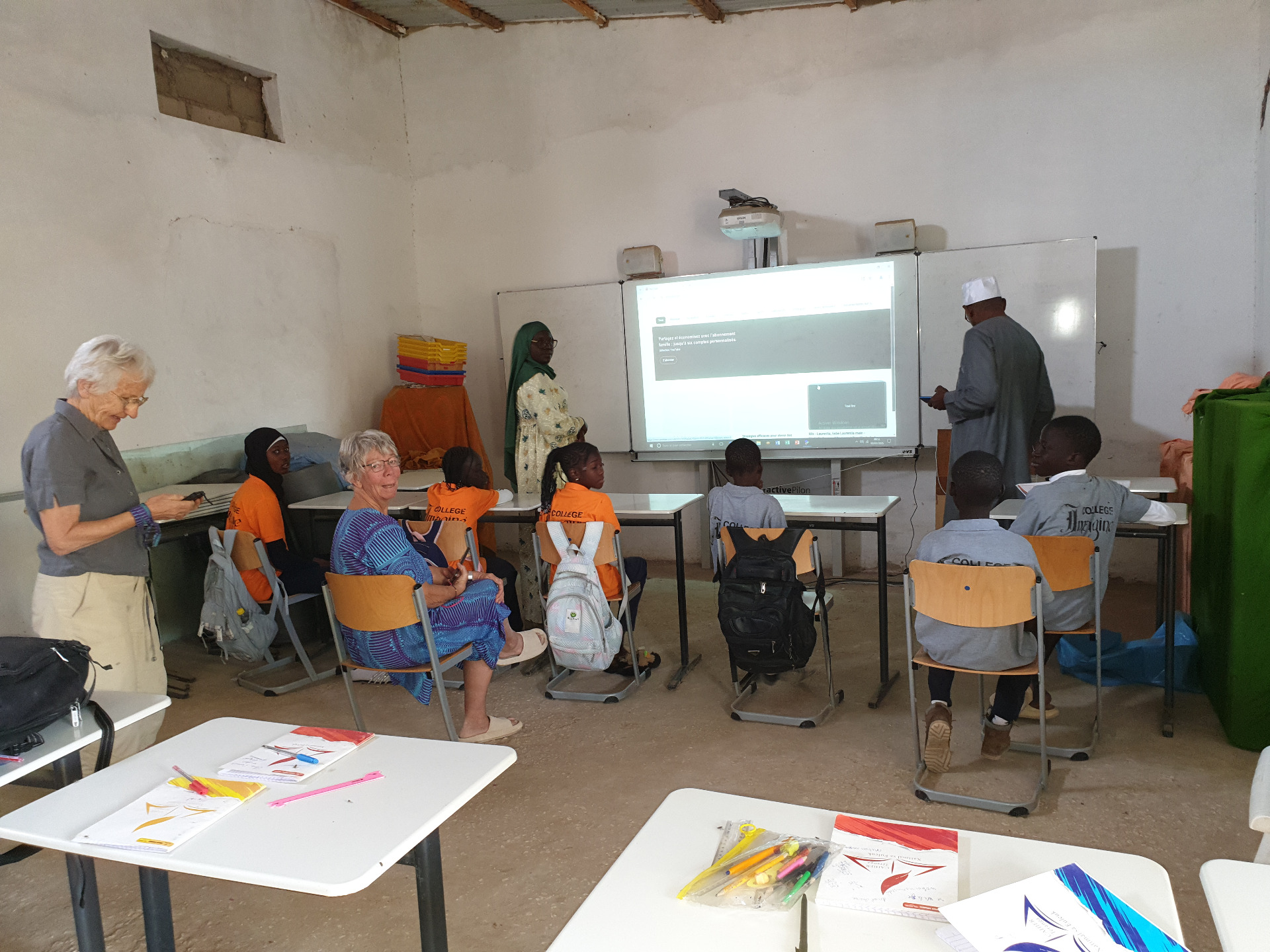 Der Geschichtslehrer Abda N'Diaye stand uns beiseite, wenn's Probleme mit den 2 gebraucht gekauften Computern gab. Die stehen jetzt unseren Partnern zur Verfügung, die inzwischen schon ganz gut damit zurechtkommen, aber immer auf seine Hilfe bauen können.